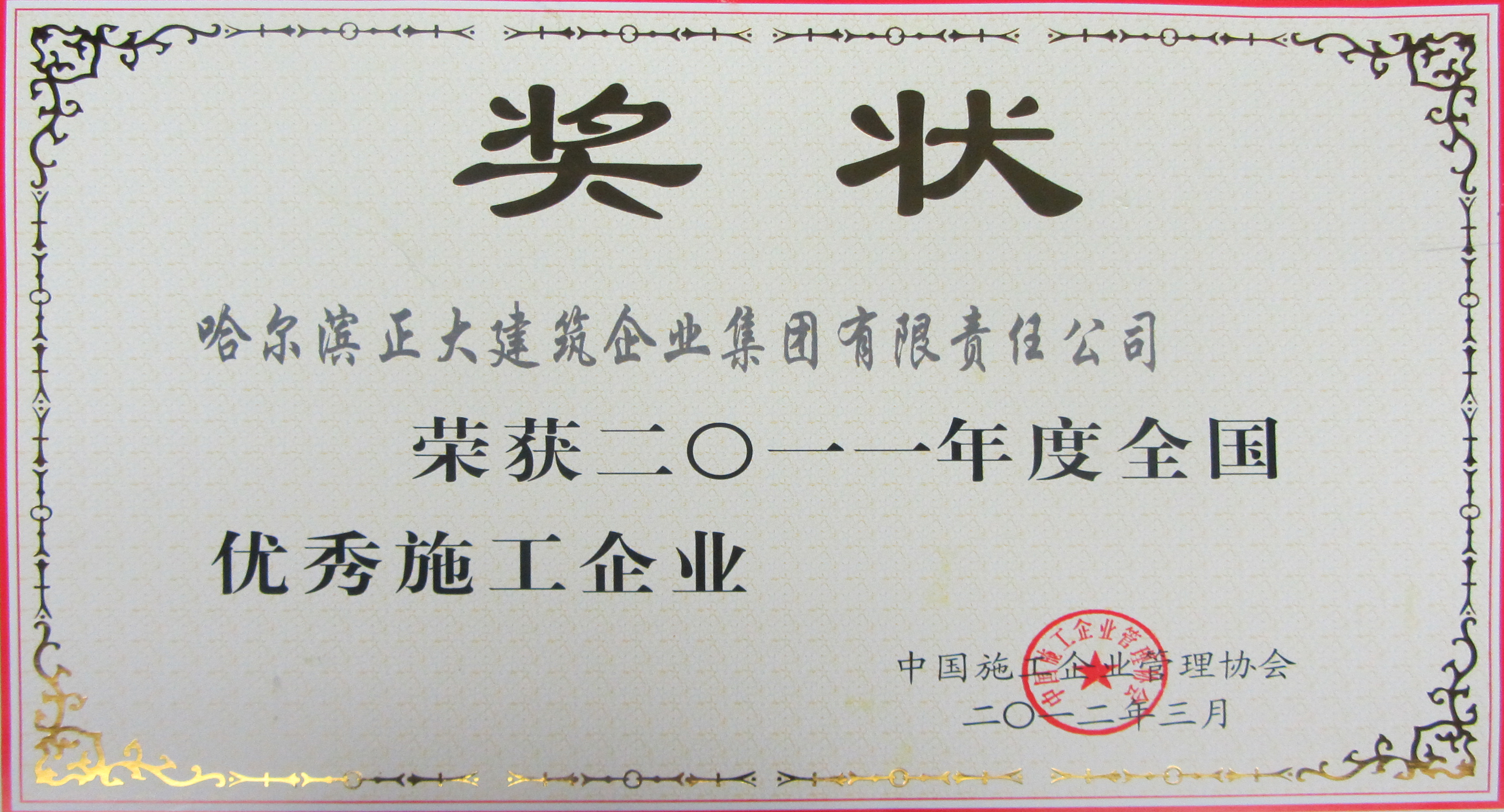 公司成立至今,先后被評為全國優(yōu)秀施工企業(yè)、全國用戶滿意施工企業(yè),全國首批建筑業(yè)誠信施工企業(yè),全國“安康杯”競賽優(yōu)勝企業(yè),全國工程建設(shè)質(zhì)量管理優(yōu)秀企業(yè)、中國建設(shè)系統(tǒng)企業(yè)信用信譽(yù)AAA級單位,并多次榮獲省、市“先進(jìn)單位”、“優(yōu)秀單位”、“重合同守信用單位”、“黑龍江省優(yōu)秀施工企業(yè)”、“黑龍江省用戶滿意施工企業(yè)”等光榮稱號。并連續(xù)獲得哈爾濱市質(zhì)量管理先進(jìn)單位、黑龍江省質(zhì)量管理先進(jìn)企業(yè)、黑龍江省質(zhì)量管理獎、黑龍江省“安康杯”優(yōu)勝企業(yè)等榮譽(yù)。并在建筑施工現(xiàn)場環(huán)保管理上創(chuàng)造了一項“中國企業(yè)新記錄”。